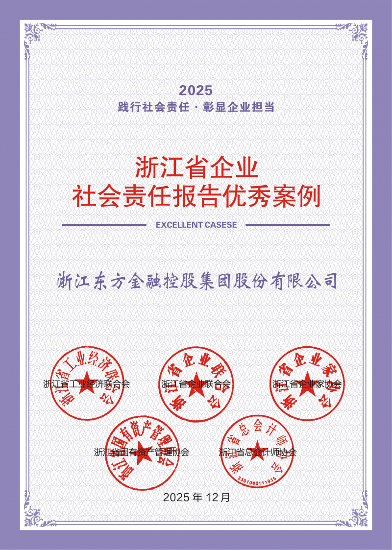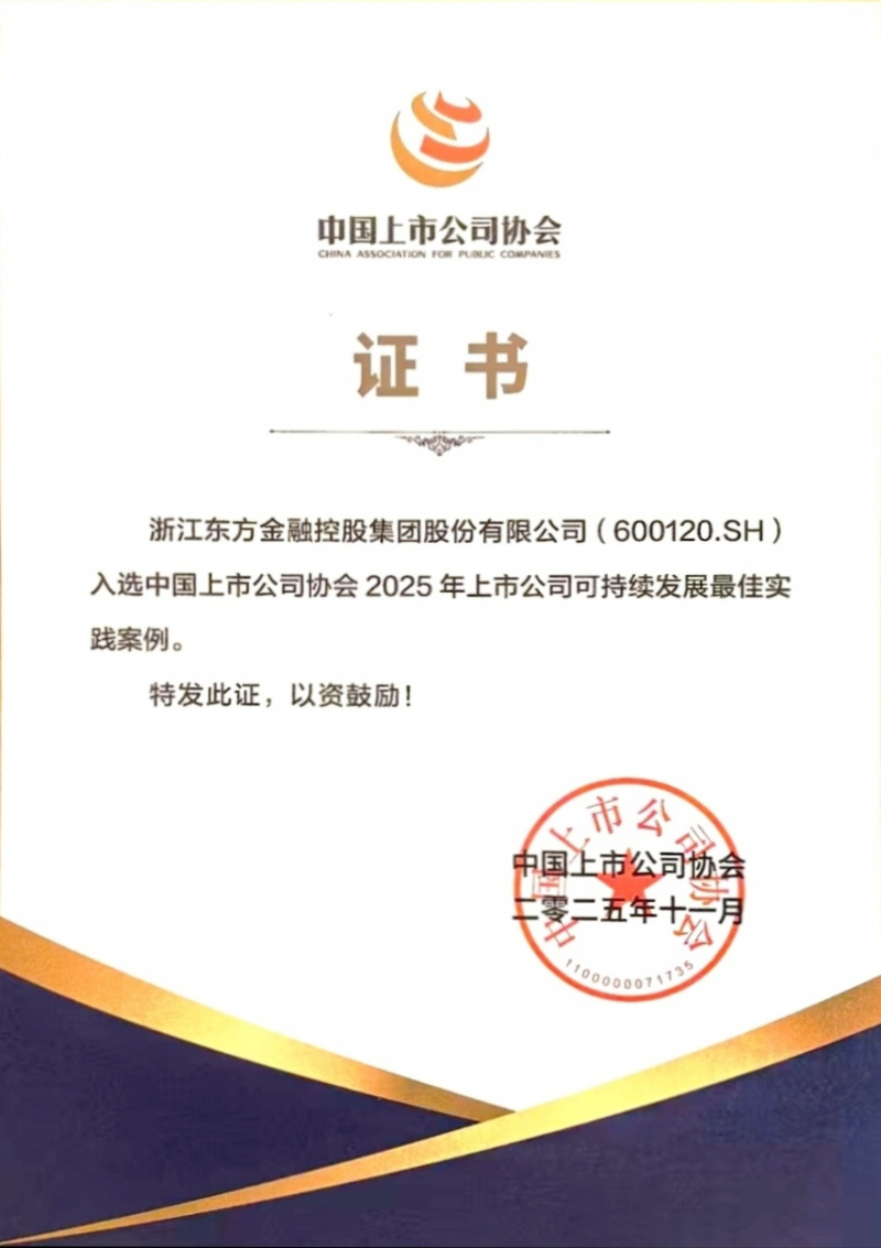 浙江東方再次榮獲“2025年上市公司可持續(xù)發(fā)展最佳實踐案例”“優(yōu)秀上市公司獎”“最具社會責任上市公司獎”“2025浙江省企業(yè)社會責任報告優(yōu)秀案例”等多項獎項。
