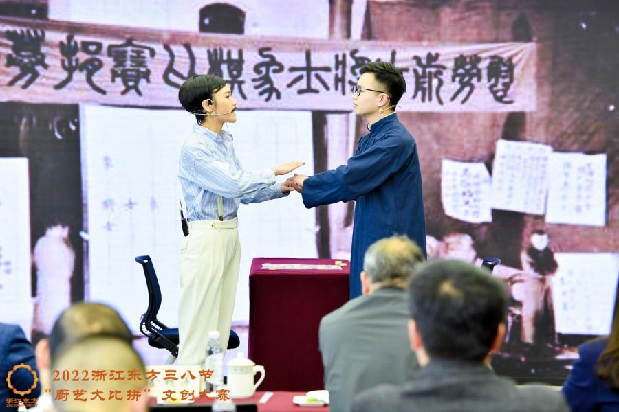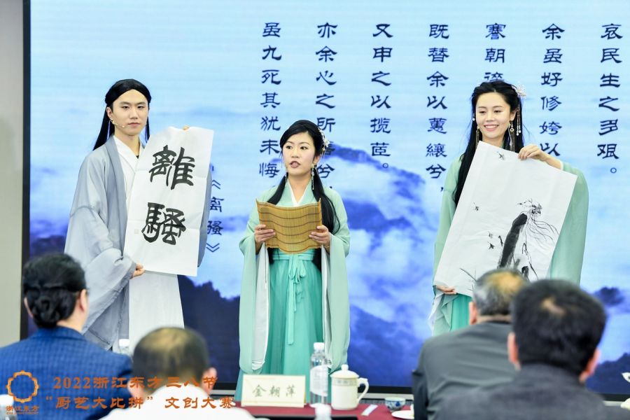 為迎接三八國(guó)際勞動(dòng)?jì)D女節(jié),浙江東方舉辦老菜新做“廚藝大比拼”文化創(chuàng)意大賽,全程同步直播,展示了中華民族歷代愛國(guó)人士家鄉(xiāng)特色菜肴,講述菜品背后歷史文化,演繹愛黨愛國(guó)傳奇故事,弘揚(yáng)民族精神。公司黨委書記、董事長(zhǎng)金朝萍,黨委副書記、董事陳鑫云,工會(huì)主席裘高堯出席本次活動(dòng)?;顒?dòng)邀請(qǐng)省國(guó)貿(mào)集團(tuán)綜合監(jiān)督部(黨委巡察辦公室)及女工委主任張進(jìn)智,工會(huì)副主席、工會(huì)辦公室副主任孫森偉及浙金信托、大地期貨工會(huì)相關(guān)負(fù)責(zé)人擔(dān)任比賽評(píng)委。