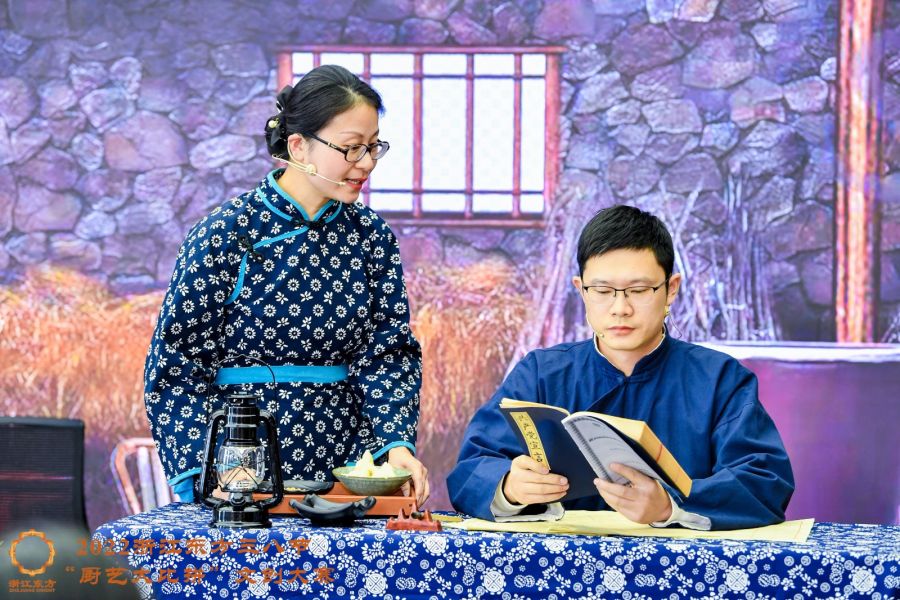 入得廚房、出得廳堂。菜品展示環(huán)節(jié),參賽巾幗化身故事人物,通過舞臺(tái)走秀、歌舞朗誦、情景演繹等方式,將中華民族發(fā)展史上民族英雄、愛國(guó)志士、革命先驅(qū)的故事融入飲食文化,飽含深情展示了初心使命的鮮紅底色、民族精神的歷久彌香、砥礪前行的理想本味,激發(fā)了干部職工的愛黨愛國(guó)之情。